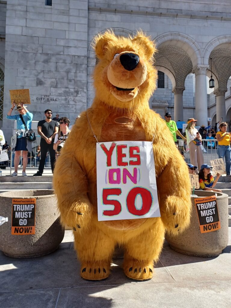 - Oso de California pide que los votantes elijan Sí a la Propuesta 50.