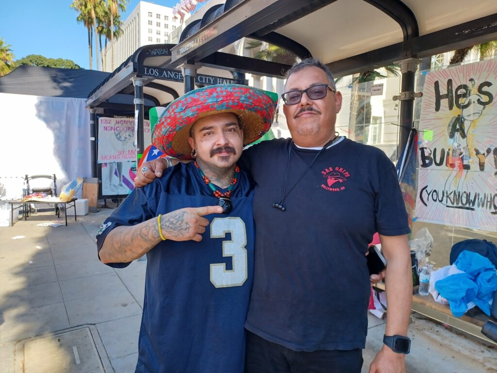 Juan Parra y Eloy Lara Jr. amigos y socios de un negocio en Hollywood comentaron que decidieron unirse a la marcha ya que los padres de ambos son mexicanos y tuvieron que luchar muy duro para sacar adelante a sus familias.