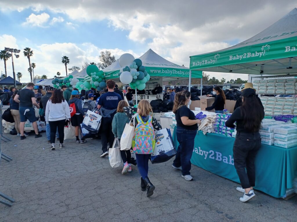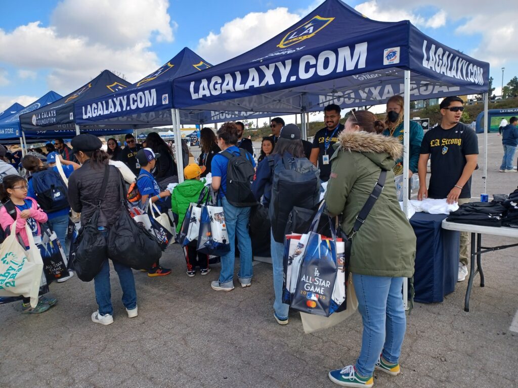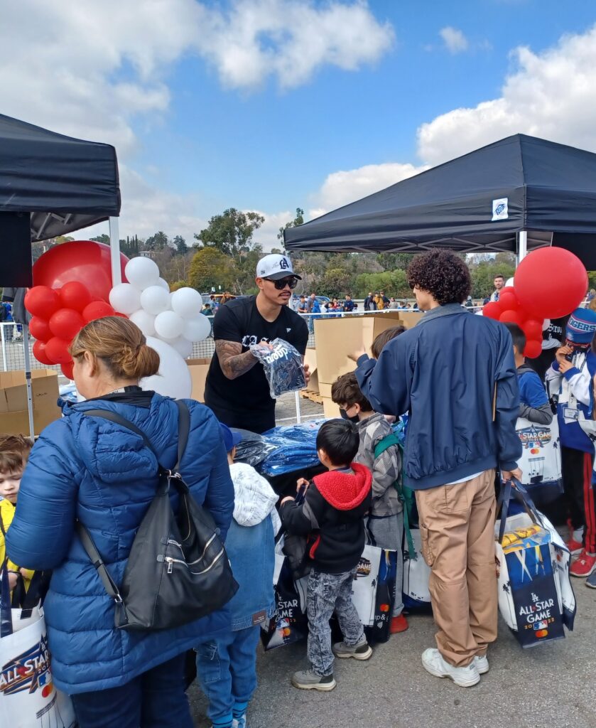 Los Dodgers y Los Angeles Dodgers Foundation en conjunto con las organizaciones deportistas profesionales antes mencionadas estuvieron regalando mascarillas, pañales, toallitas y fórmula para bebe, camisetas, sudaderas, pants, calcetines, gorros, mochilas, juguetes, colchas, artículos de higiene y de emergencia, vasos y otros productos escolares, cada uno de ellos con el logotipo del club deportivo correspondiente, Vanessa Bryant, dirigente de la Fundación Deportiva Mamba y Mambacita también estuvo presente regalando tenis Kobe Bryant a los niños y niñas y a los adultos mientras los saludaba con una sonrisa.