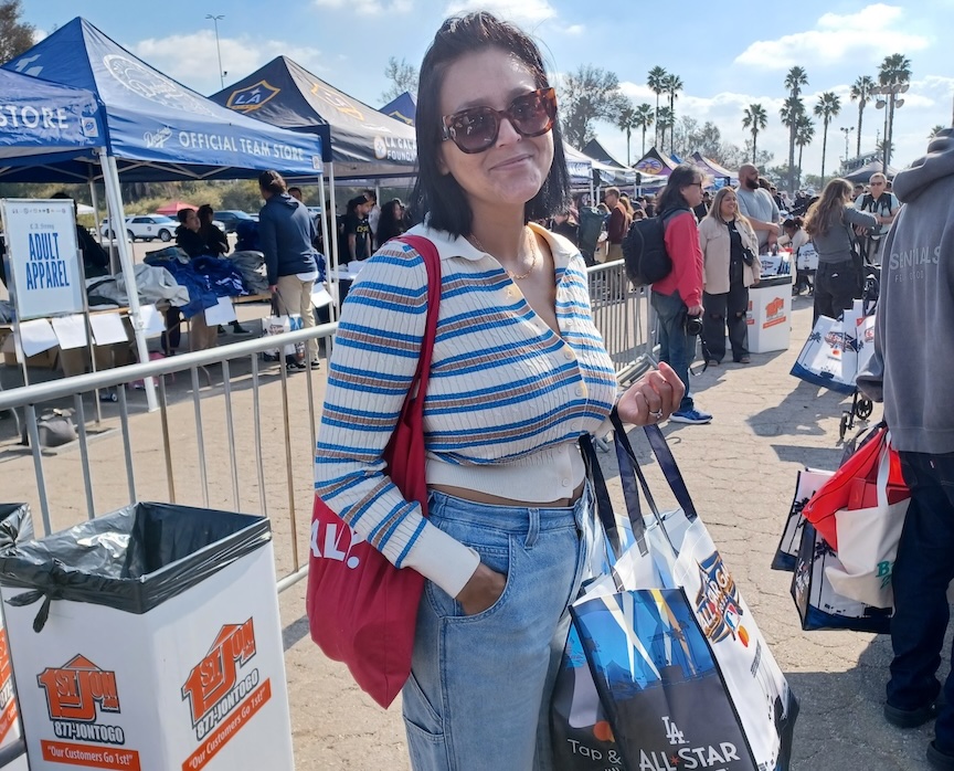 “Todas mis hijas son unas fanáticas muy, muy grandes de Los Dodgers” resaltó Irma. “Entonces ellas no se podían perder este evento de apoyo por eso estamos aquí, porque con el incendio perdieron las camisas, las gorras, los zapatos y todos los artículos que tenían de su equipo favorito de béisbol, por eso están contentas con estos donativos”.